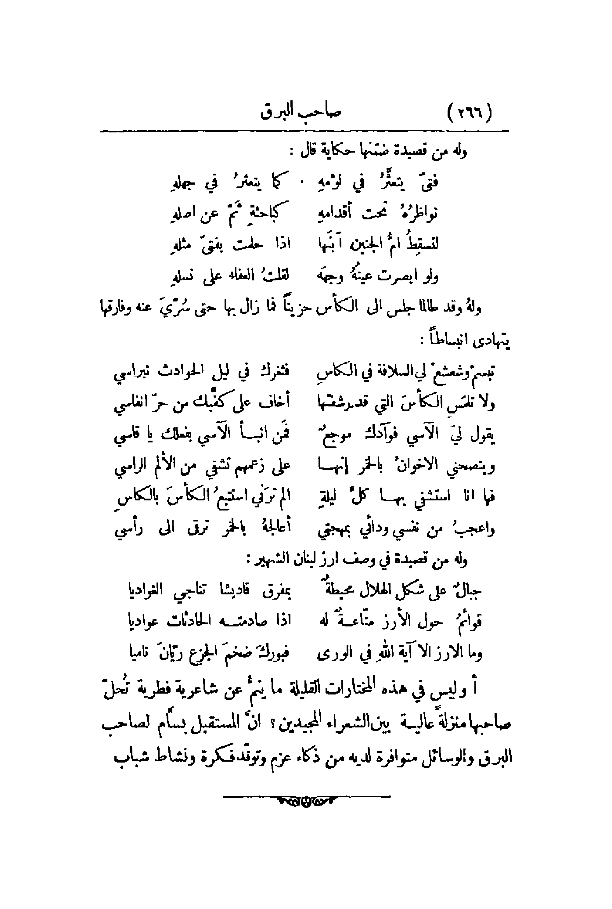 أو ليس في هذه المختارات القليلة ما ينمُّ عن شاعرية فطرية تُحلّ صاحبها منزلةً عالية بين الشعراء المجيدين؟ أنَّ المستقبل بسَّام لصاحب البرق والوسائل متوافرة لديه من ذكاء عزم وتوقّد فكرة ونشاط شباب.