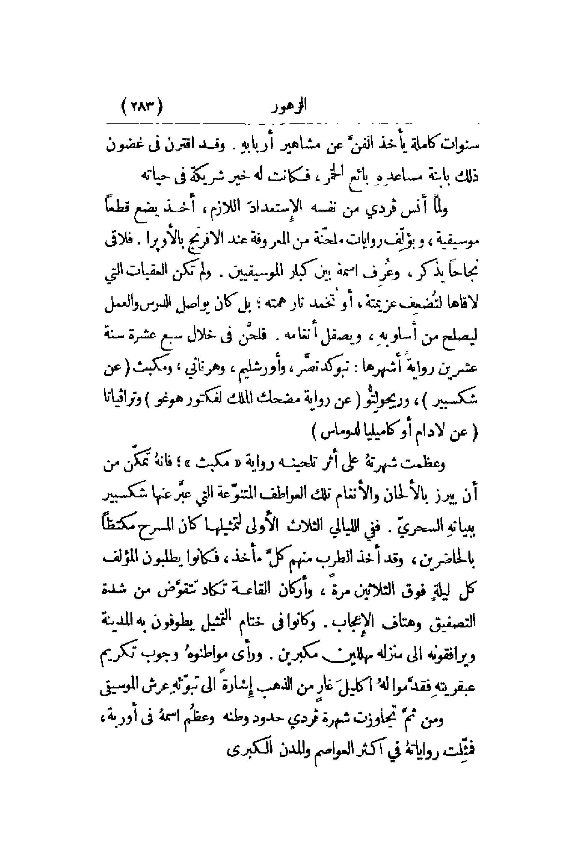 مشاخير أربابهِ. وقد اقترن في غضون ذلك بابنة مساعدهِ بائع الخمرو فكانت له خير شريكة في حياته. ولمَّا أنس فردي من نفسه الإِستعدادَ اللازم , أخذ يضع قطعاً موسيقية , ويؤلِّف روايات ملحّنة من المعروفة عند الإفرنج بالأوبرا. فلاقى نجاحا يذكر , وعُرف اسمه بين كبار الموسيقين. ولم تكن العقبات التي لاقاها لتُضعف عزيمته , أو تخمد نار همته؛ بل كان يواصل الدرس والعمل ليصلح من أسلوبه , ويصقل أنغامه. فلحَّن في خلال سبع عشرة سنة عشرين رواية أشهرها: نبوكد نصَّر , وأورشليم , وهزناني , ومكبث عن شكسبير , وريجولتُّوا عن رواية مضحك الملك لفكتور هوغو وترافياتا عن لأدم أو كاميليا لدوس. وعظمت شهرتهُ على أثر تلحينه رواية مكبث فإنهُ تمكّن من أن يبرز بالألحان والأنغام تلك العواطف المتنوّعة التي عبَّر عنها شكسبير ببيانه السحريّ. ففي الليالي الثلاث الأولى لتمثيلها كان المسرح مكتظاً بالحاضرينو وقد أخذ الطرب منهم كلَّ مأخذ , فكانوا يطلبون المؤلف كل ليلة فوق الثلاثين مرة , وأركان القاعة تكد تتفوَّض من شدة التصفيق وهتاف الإِعجاب. وكانوا في ختام التمثيل يطوفون به المدينة ويرافقونه إلى منزله مهللين مكبرين. ورأى مواطنوهُ وجوب تكريم عبثريته فقدَّموا له أكليل غار من الذهب إشارة إلى تبوّئه عرش الموسيقى. ومن ثم نجاورت شهرة فردي حدود وطنه وعظم اسمه في أوربة , فمثِّت رواياته في أكثر العواصم والمدن الكبرى.