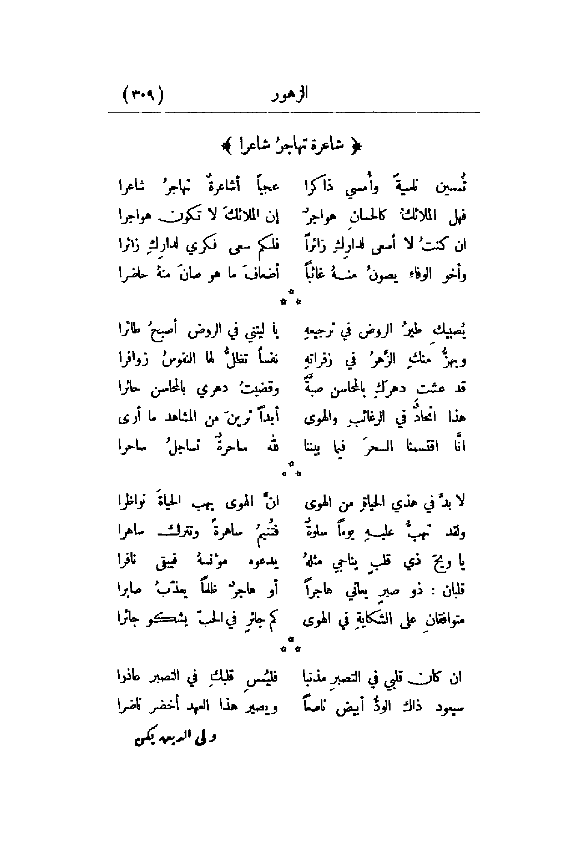 قلبان: ذو صبرٍ يعاني هاجرا ... أو هاجرٌ ظلماً يعذّبُ صابرا