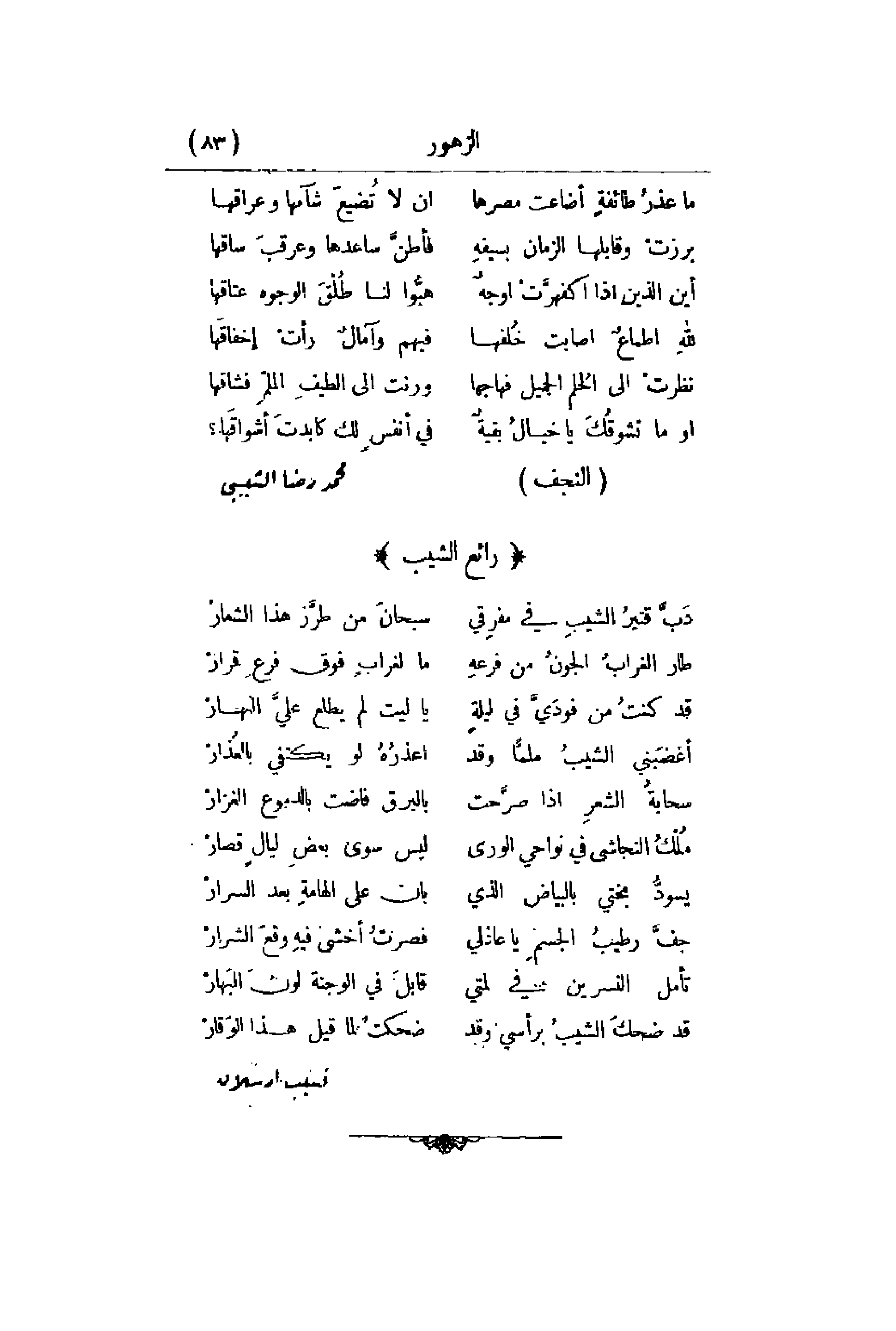 دَبَّ قتيرُ الشيبِ في مفرِقي ... سبحانَ من طرَّز هذا الشعارْ