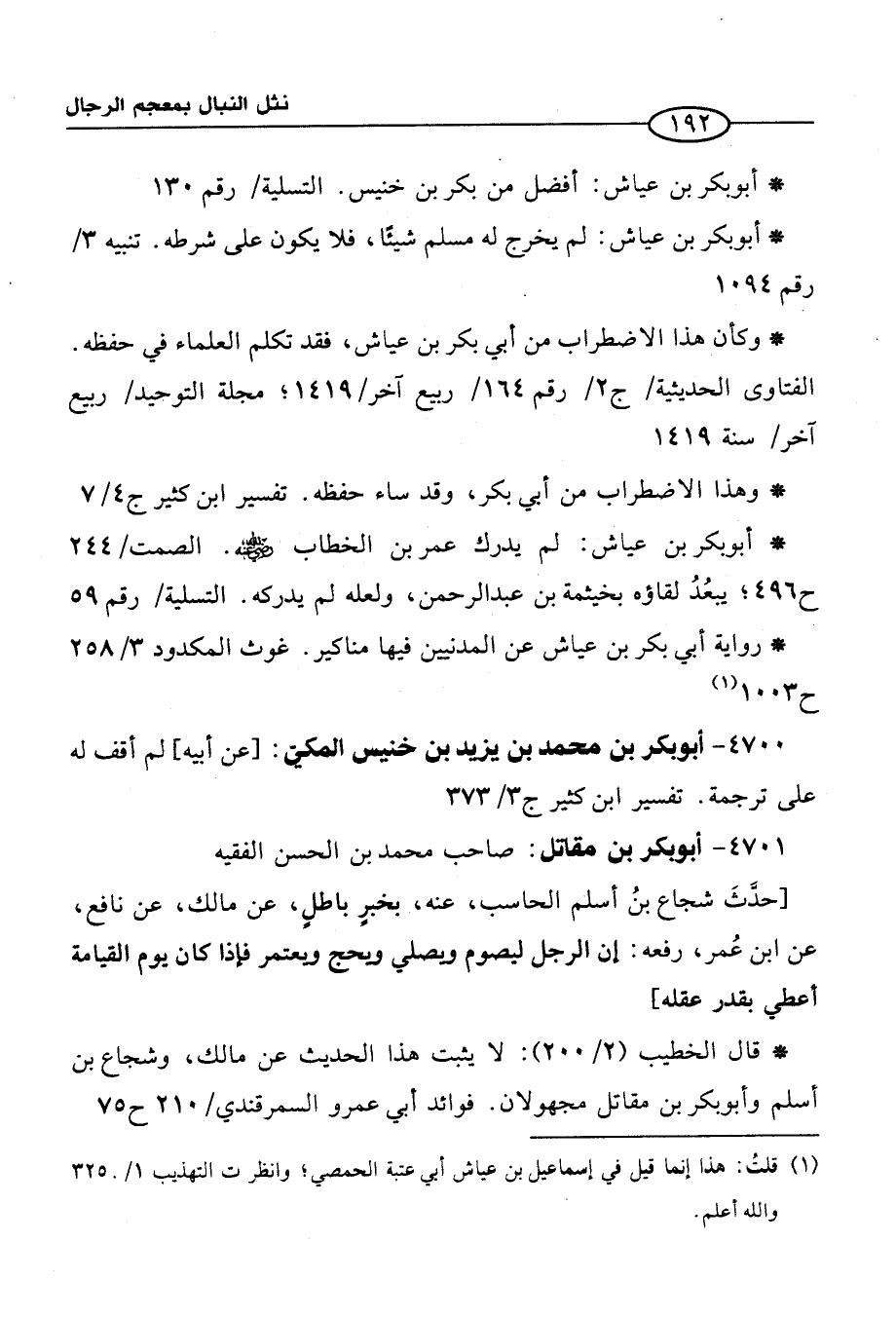 * أبو بكر بن عياش: أفضل من بكر بن خنيس. التسلية / رقم 130