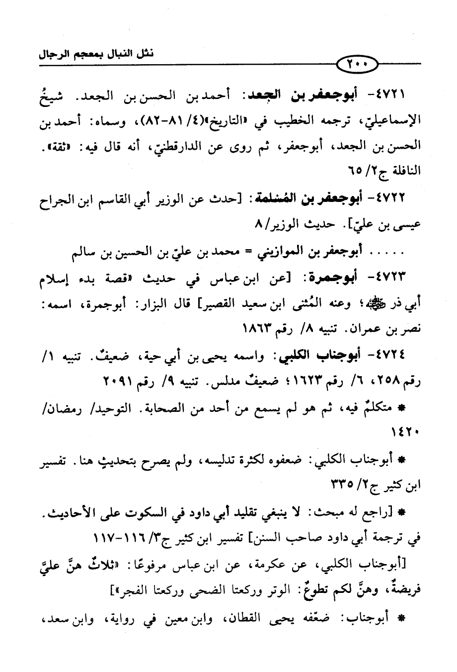 4724 - أبو جناب الكلبي: واسمه يحيى بن أبي حية، ضعيف. تنبيه 1/ رقم 258، 6/ رقم 1623؛ ضعيفٌ مدلس. تنبيه 9/ رقم 2091
