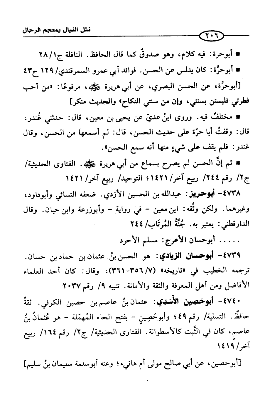 4739 - أبو حسان الزيادي: هو الحسن بنُ عثمان بن حماد بن حسان. ترجمه الخطيب في "تاريخه" (7/ 356 - 361)، وقال: كان أحد العلماء الأفاضل ومن أهل المعرفة والثقة والأمانة. تنبيه 9/ رقم 2037