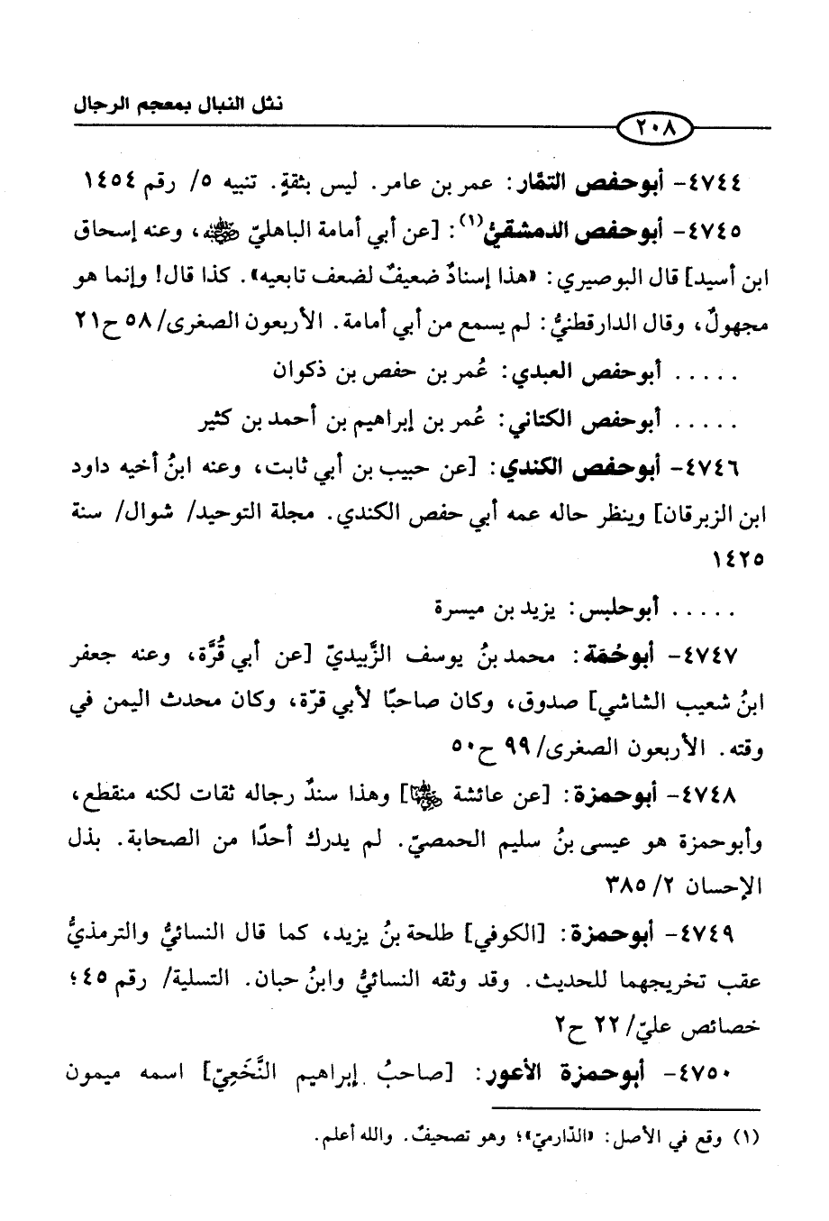 4746 - أبو حفص الكندي: [عن حبيب بن أبي ثابت، وعنه ابنُ أخيه داود ابن الزبرقان] وينظر حالة عمه أبي حفص الكندي. مجلة التوحيد / شوال / سنة 1425