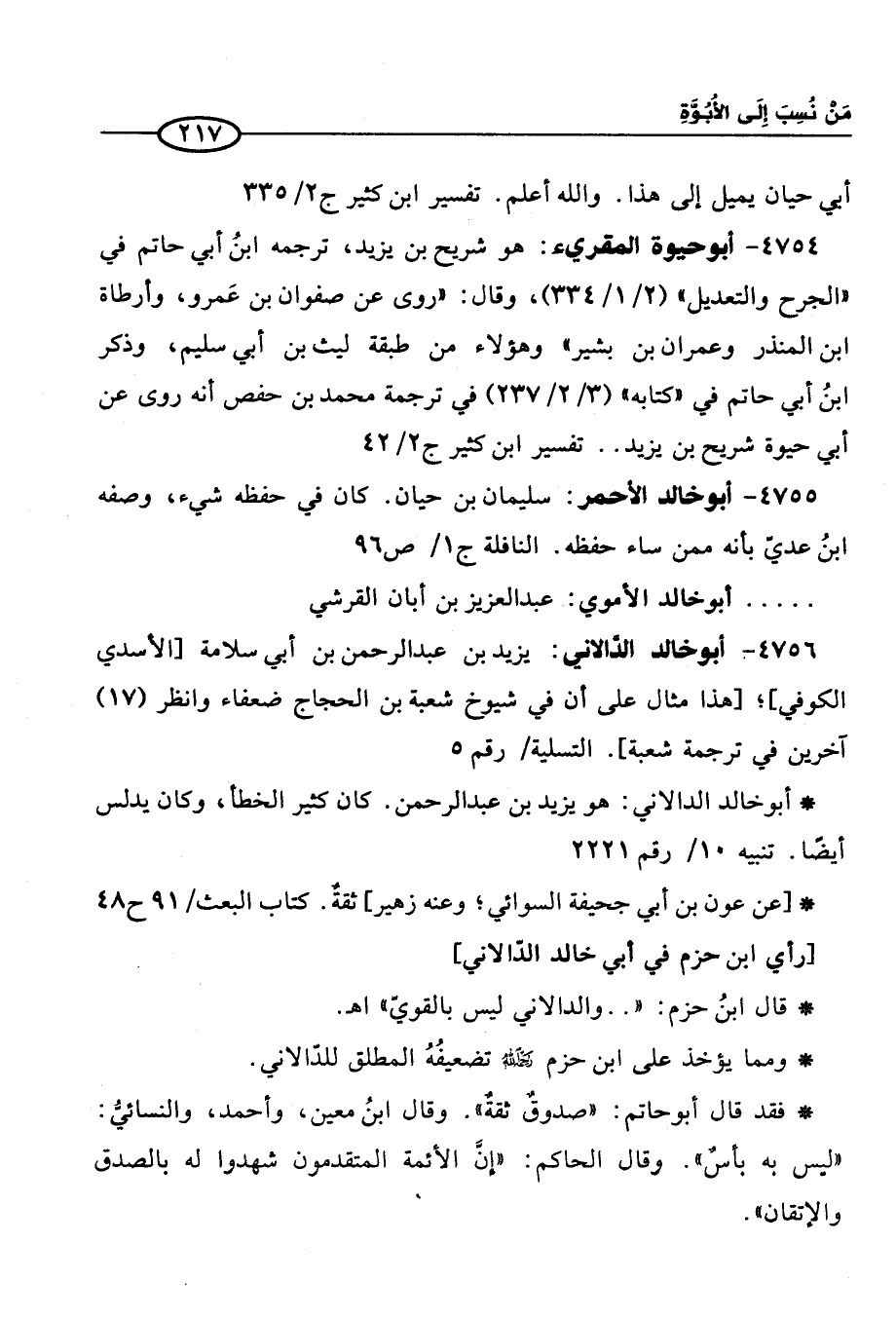 4756: أبو خالد الدَّالاني: يزيد بن عبد الرحمن بن أبي سلامة [الأسدي الكوفي]؛ [هذا مثال على أن في شيوخ شعبة بن الحجاج ضعفاء وانظر (17) آخرين في ترجمة شعبة]. التسلية / رقم5