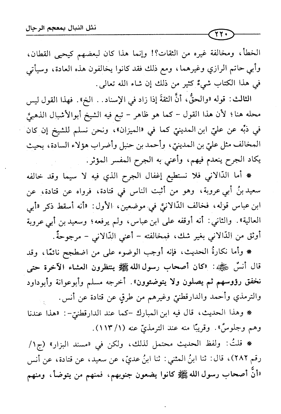 الثالث: قوله "والحقُّ، أنَّ الثقةَ إذا زاد في الإسناد. . الخ". فهذا القول ليس محله هنا؛ لأن هذا القول -كما هو ظاهر- تبع فيه الشيخ أبو الأشبال الذهبيَّ في ذبِّه عن عليّ ابن المدينيّ كما في "الميزان"، ونحن نسلم للشيخ إن كانْ المخالف مثل عليّ بن المدينيّ، وأحمد بن حنبل وأضراب هؤلاء السادة، بحيث يكاد الجرح ينعدم فيهم، وأعني به الجرح المفسر المؤثر.