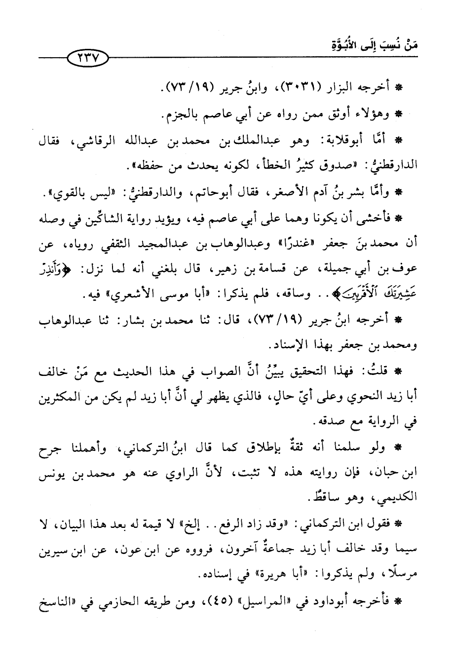 * قلتُ: فهذا التحقيق يبيِّنُ أنَّ الصواب في هذا الحديث مع مَنْ خالف أبا زيد النحوي وعلى أيّ حالٍ، فالذي يظهر لي أنَّ أبا زيد لم يكن من المكثرين في الرواية مع صدقه.