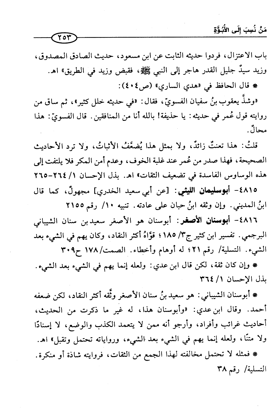 4816 - أبو سنان الأصغر: أبو سنان هو الأصغر سعيد بن سنان الشيباني البرجمي. تفسير ابن كثير ج 3/ 185؛ قوَّاهُ أكثر النقاد، وكان يهم في الشيء بعد الشيء. التسلية / رقم 21؛ له أوهام وأخطاء. الصمت / 178 ح 309
