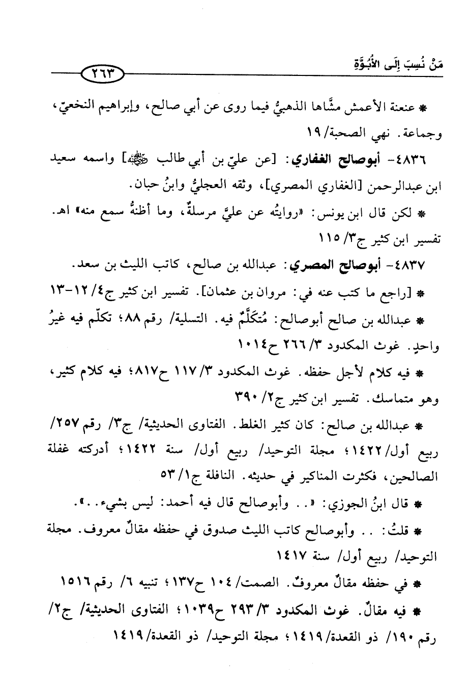 4836 - أبو صالح الغفاري: [عن عليّ بن أبي طالب -رَضِيَ الله عَنْهُ-] واسمه سعيد ابن عبد الرحمن [الغفاري المصري]، وثقه العجليُّ وابنُ حبان.