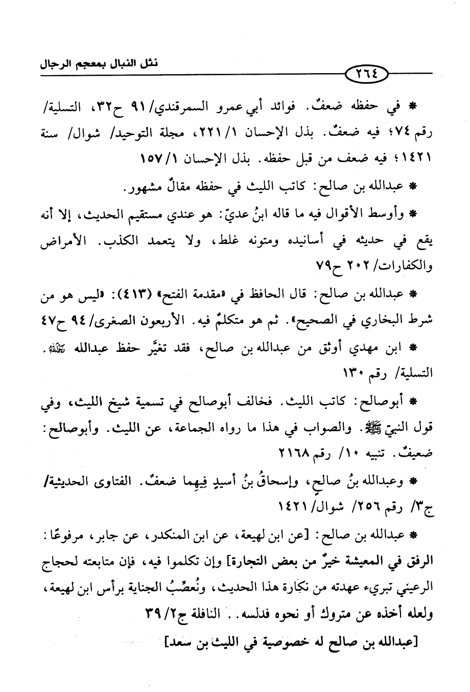 * عبد الله بن صالح: كاتب الليث في حفظه مقالٌ مشهور.