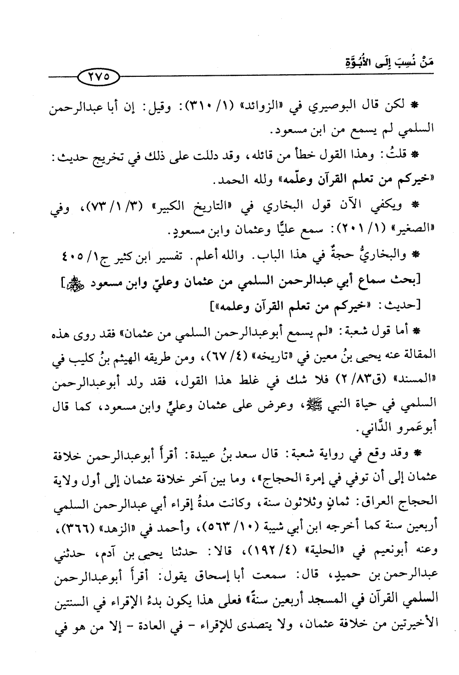 [بحث سماع أبي عبد الرحمن السلمي من عثمان وعليّ وابن مسعود رضي الله عنهم]