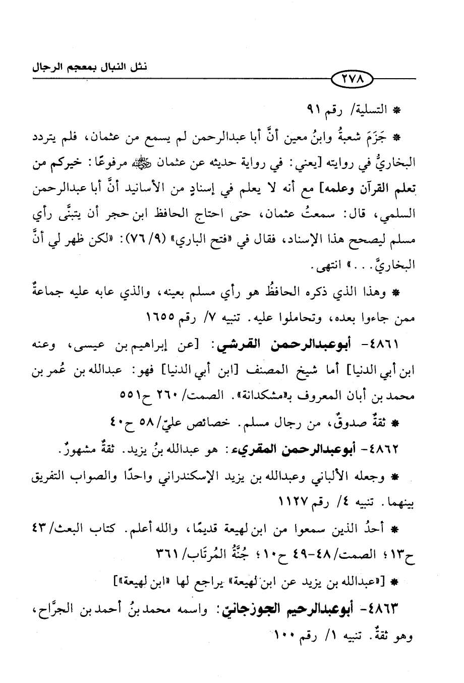 4863 - أبو عبد الرحيم الجوزجانيّ: واسمه محمَّد بنُ أحمد بن الجرَّاح، وهو ثقةٌ. تنبيه 1/ رقم 100