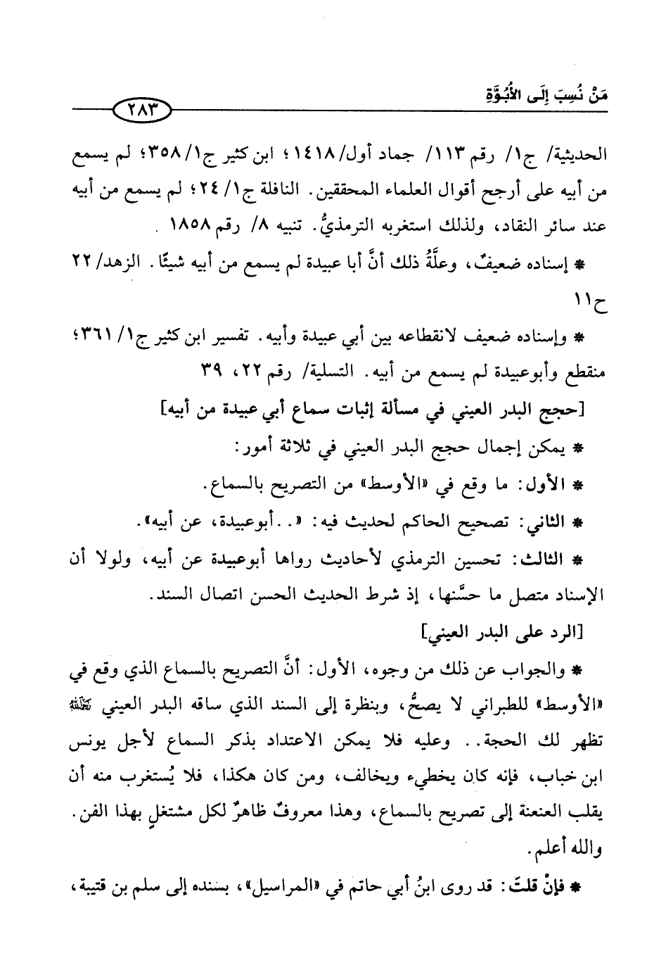 [حجج البدر العيني في مسألة إثبات سماع أبي عبيدة من أبيه]