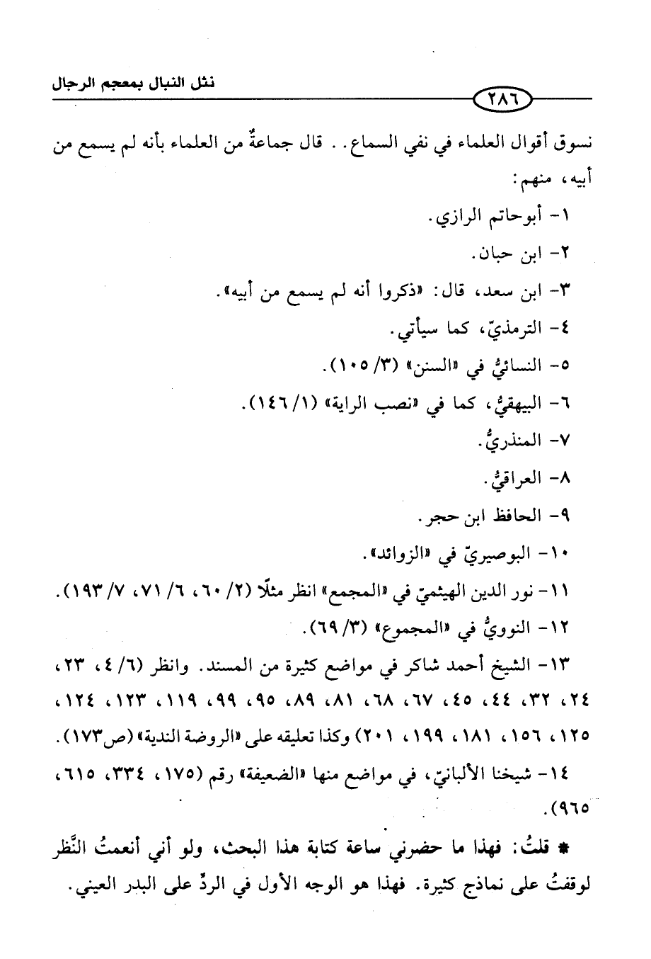 13 - الشيخ أحمد شاكر في مواضع كثيرة من المسند. وانظر (6/ 4، 23، 24، 32، 44، 45، 67، 68، 81، 89، 95، 99، 119، 123، 124، 125، 156، 181، 199، 201) وكذا تعليقه على"الروضة الندية" (ص 173).