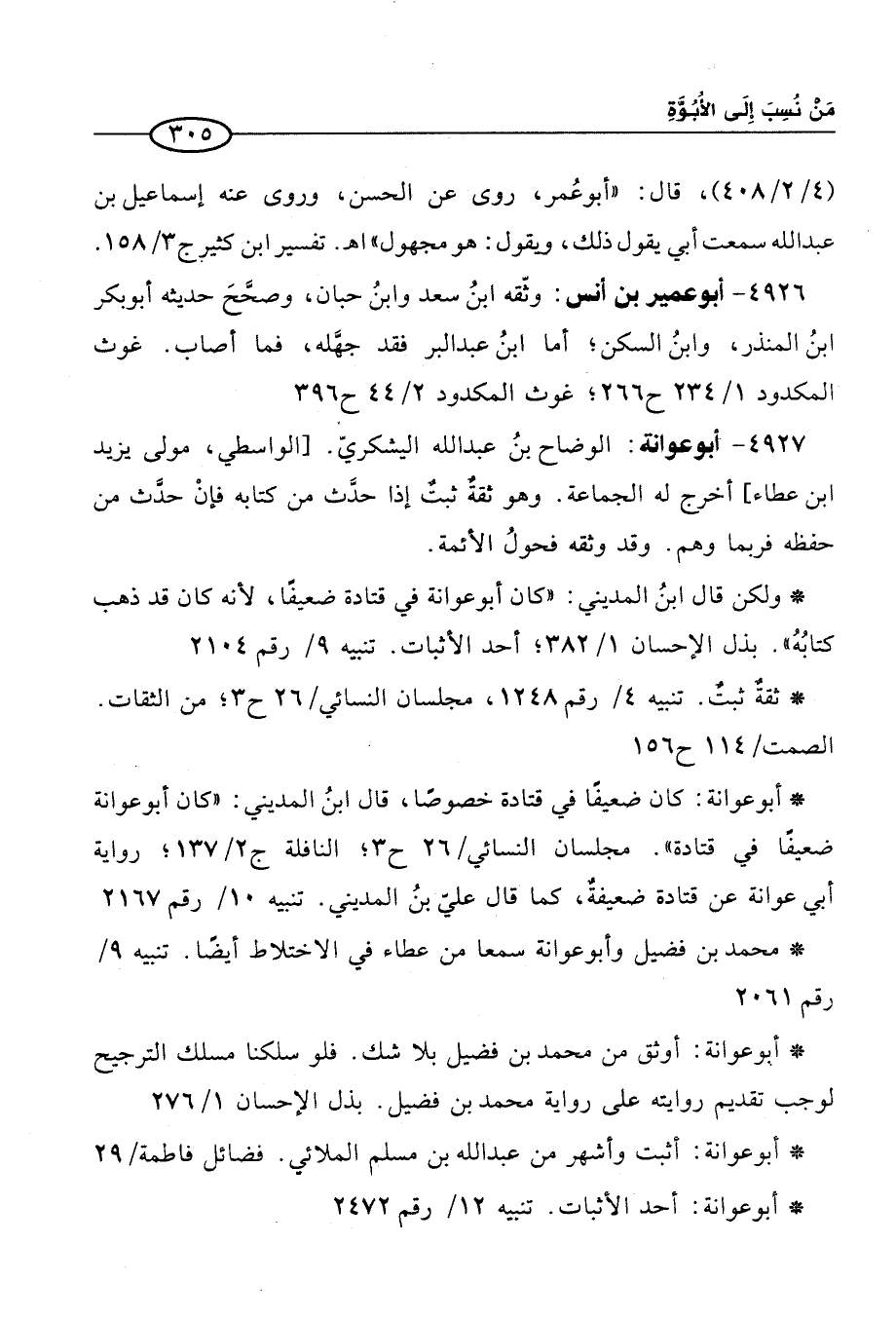 * ولكن قال ابنُ المديني: "كان أبو عوانة في قتادة ضعيفًا, لأنه كان قد ذهب كتابُهُ". بذل الإحسان 1/ 382؛ أحد الأثبات. تنبيه 9/ رقم 2104