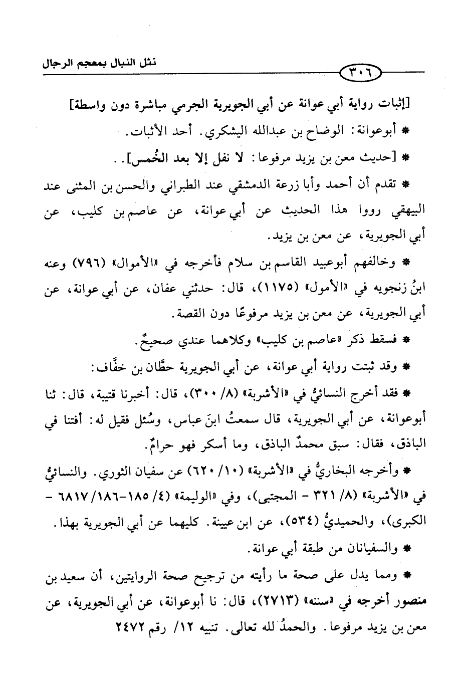 *ومما يدل على صحة ما رأيته من ترجيح صحة الروايتين، أن سعيد بن منصور أخرجه في "سننه" (2713)، قال: نا أبو عوانة، عن أبي الجويرية، عن معن بن يزيد مرفوعًا. والحمدُ لله تعالى. تنبيه 12/ رقم 2472