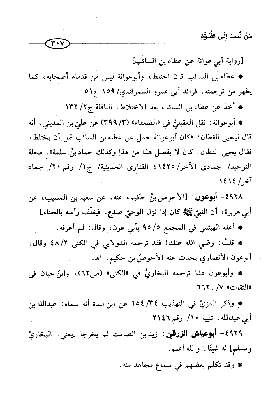 * أبو عوانة: نقل العقيليُّ في "الضعفاء" (3/ 399) عن عليّ بن المديني، أنه قال ليحيى القطان: "كان أبو عوانة حمل عن عطاء بن السائب قبل أن يختلط، فقال يحيى القطان: كان لا يفصل هذا من هذا وكذلك حماد بنُ سلمة". مجلة التوحيد / جمادى الآخر / 1425؛ الفتاوى الحديثية / ج 1/ رقم 20/ جماد آخر / 1414