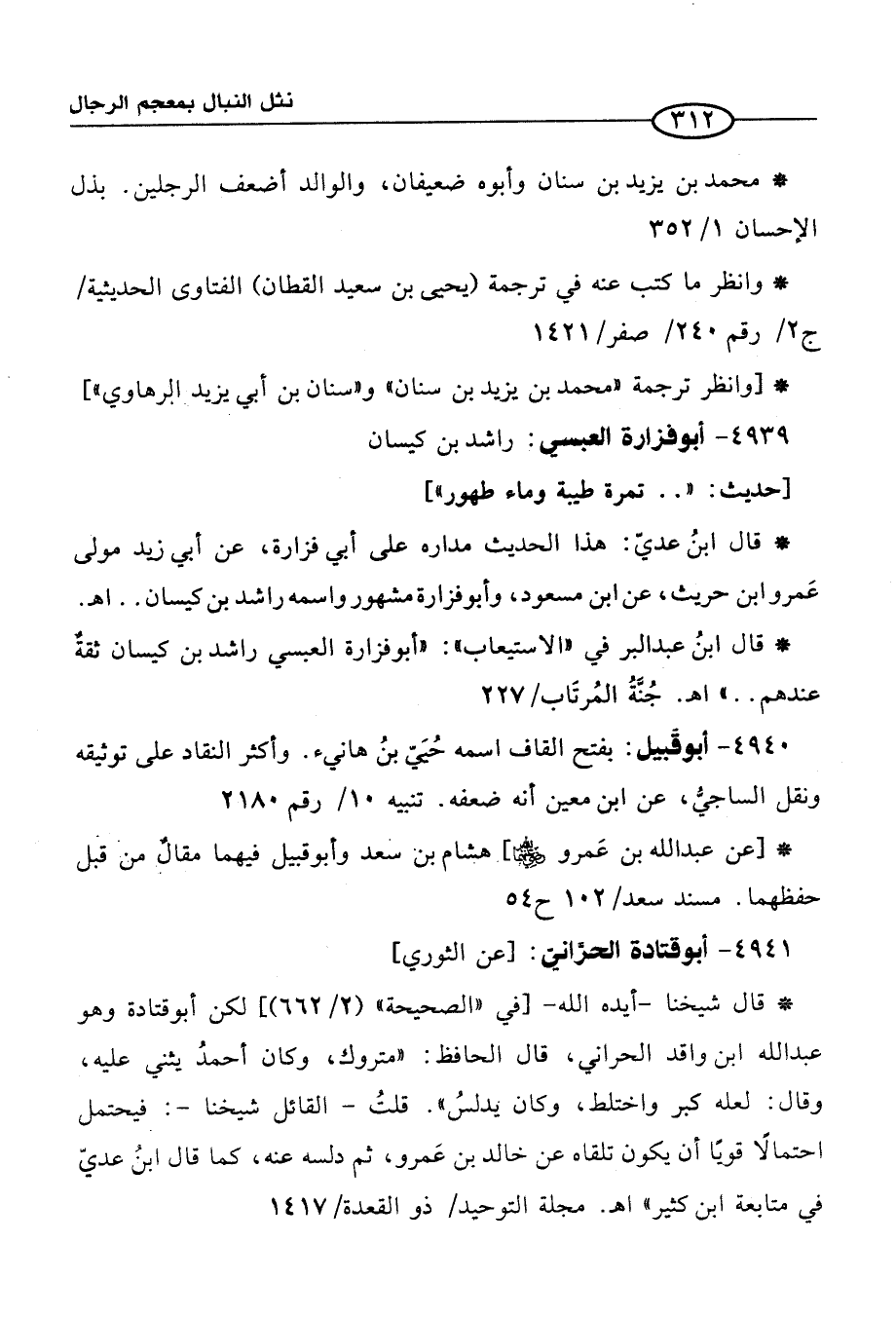 * وانظر ما كتب عنه في ترجمة (يحيى بن سعيد القطان) الفتاوى الحديثية / ج 2/ رقم 240/ صفر / 1421