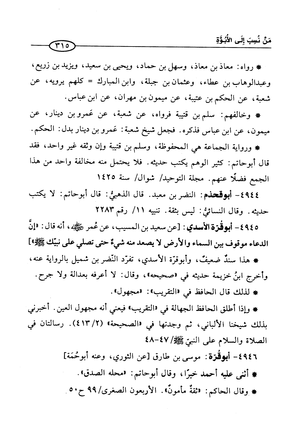 4944 - أبو قحذم: النضر بن معبد. قال الذهبيُّ: قال أبو حاتم: لا يكتب حديثه. وقال النسائيُّ: ليس بثقة. تنبيه 11/ رقم 2283