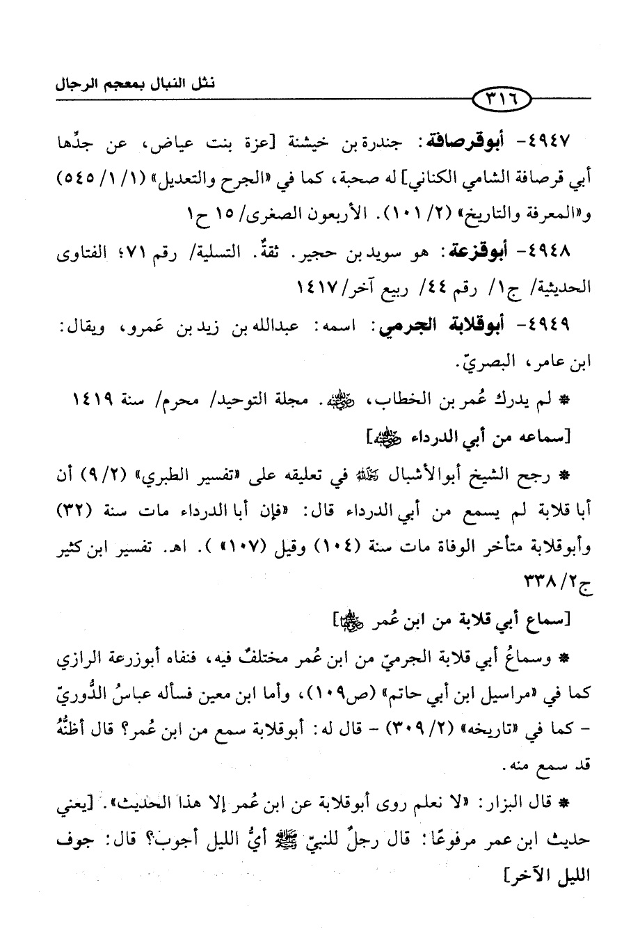 4949 - أبو قلابة الجرمي: اسمه: عبد الله بن زيد بن عَمرو، ويقال: ابن عامر، البصريّ.