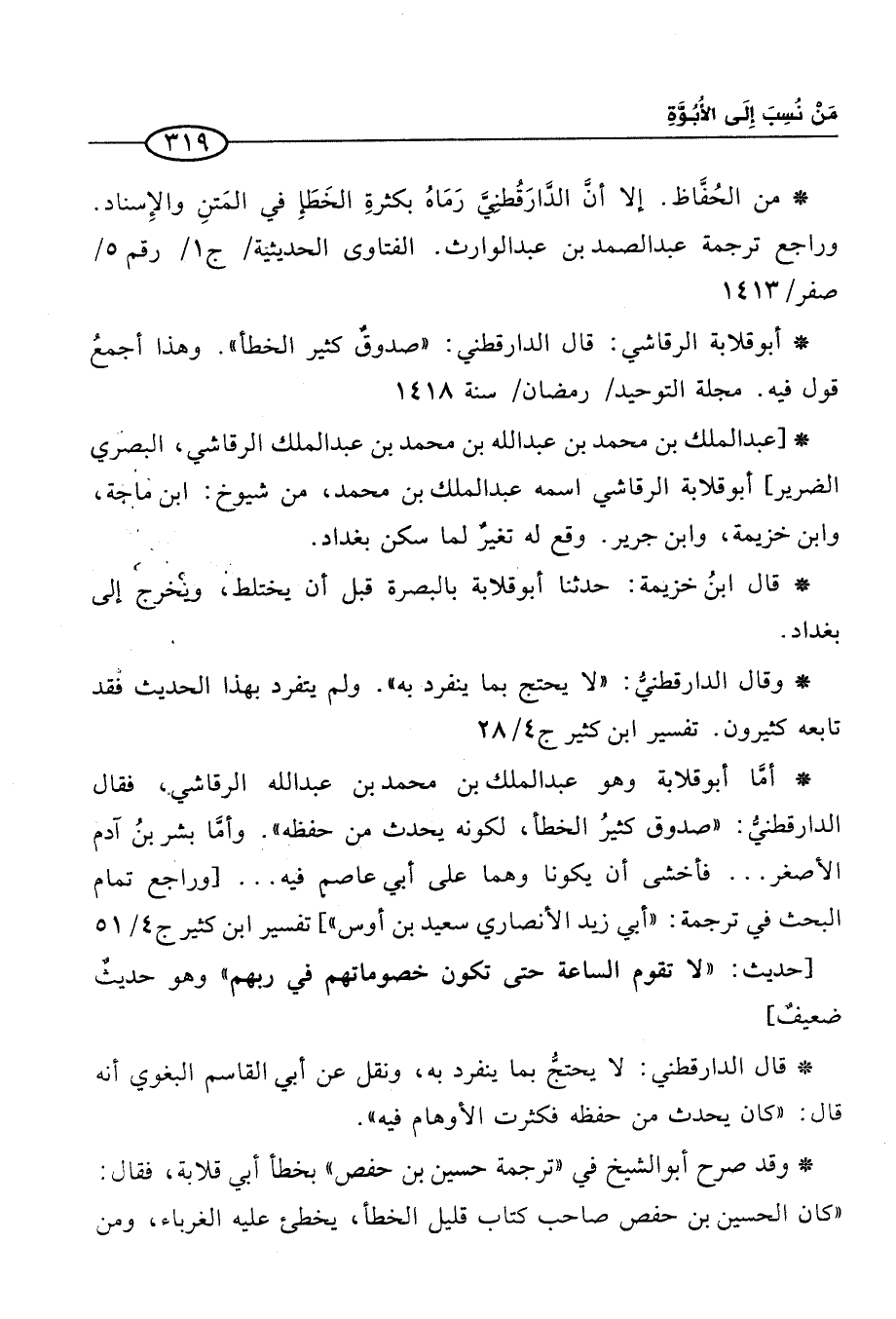 * أبو قلابة الرقاشي: قال الدارقطني: "صدوقٌ كثير الخطأ". وهذا أجمعُ قول فيه. مجلة التوحيد / رمضان / سنة 1418