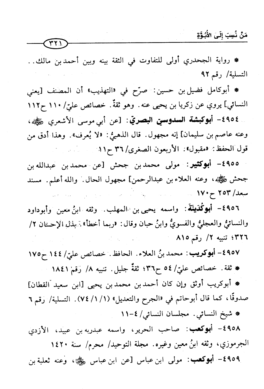 4958 - أبو كعب: صاحب الحرير، واسمه عبد ربه بن عبيد، الأزدي الجرموزي، وثقه ابنُ معين وغيره. مجلة التوحيد / محرم / سنة 1420