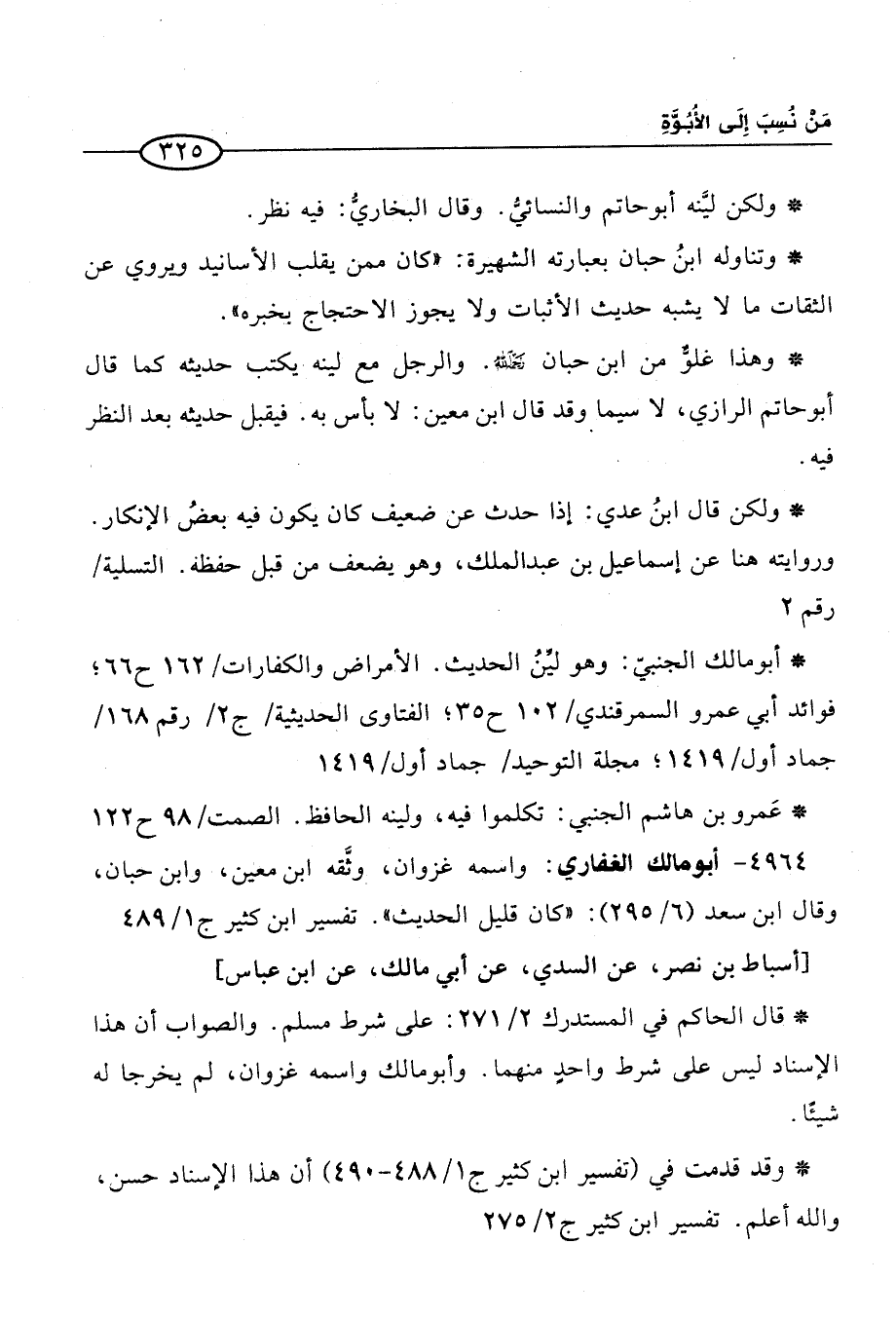 4964 - أبو مالك الغفاري: واسمه غزوان، وثَّقه ابن معين، وابن حبان، وقال ابن سعد (6/ 295): "كان قليل الحديث". تفسير ابن كثير ج 1/ 489