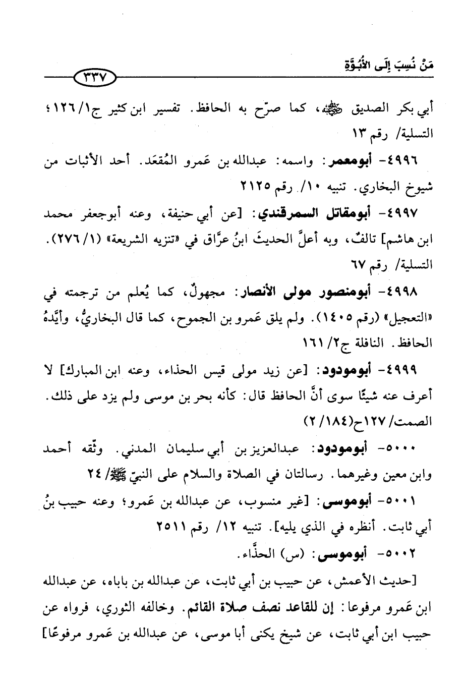 5001 - أبو موسى: [غير منسوب، عن عبد الله بن عَمرو؛ وعنه حبيب بنُ أبي ثابت. أنظره في الذي يليه]. تنبيه 12/ رقم 2511