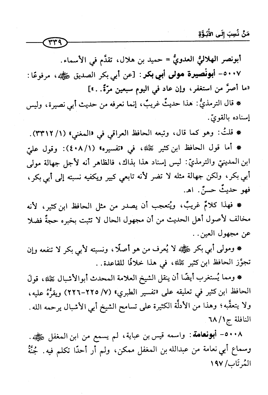 5007 - أبو نُصيرة مولى أبي بكر: [عن أبي بكر الصديق -رَضِيَ الله عَنْهُ-، مرفوعًا: "ما أصرَّ من استغفر، وإن عاد في اليوم سبعين مرّةً. . "]