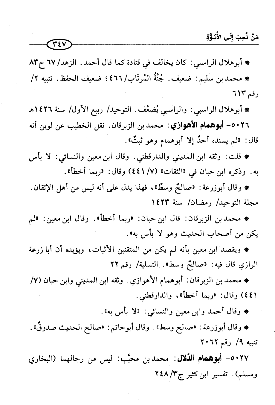 5026 - أبو همام الأهوازي: محمَّد بن الزبرقان. نقل الخطيب عن لوين أنه قال: "لم يسنده أحدٌ إلا أبو همام وهو ثبتٌ".