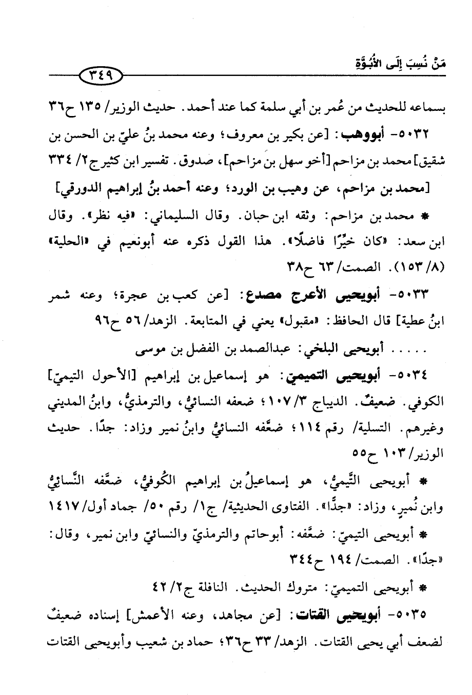 5034 - أبو يحيى التميميّ: هو إسماعيل بن إبراهيم [الأحول التيميّ] الكوفي. ضعيفٌ. الديباج 3/ 107؛ ضعفه النسائيُّ، والترمذيُّ، وابنُ المديني وغيرهم. التسلية / رقم 114؛ ضعّفه النسائيُّ وابنُ نمير وزاد: جدًا. حديث الوزير / 103 ح 55
