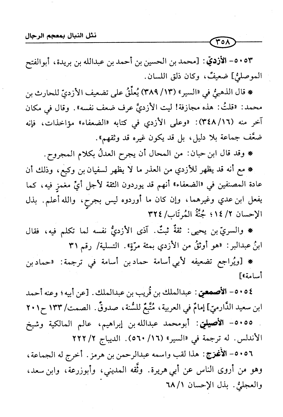 5053 - الأزديّ: [محمد بن الحسين بن أحمد بن عبد الله بن بريدة، أبوالفتح الموصليُّ] ضعيفٌ، وكان ذلق اللسان.