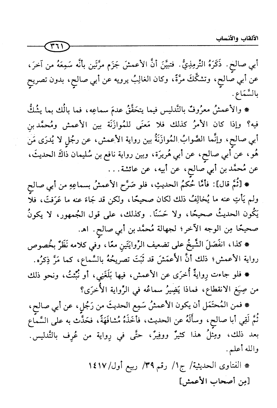 * الفتاوى الحديثية / ج 1/ رقم 39/ ربيع أول / 1417
