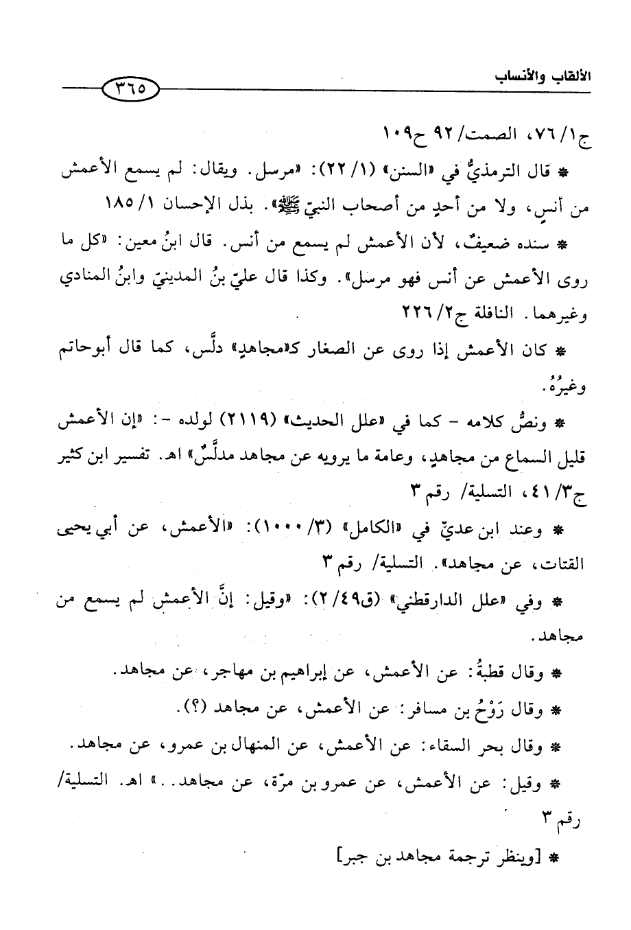 * ونصُّ كلامه -كما في "علل الحديث" (2119) لولده-: "إن الأعمش قليل السماع من مجاهدٍ، وعامة ما يرويه عن مجاهد مدلَّسٌ" اهـ. تفسير ابن كثير ج 3/ 41، التسلية / رقم 3