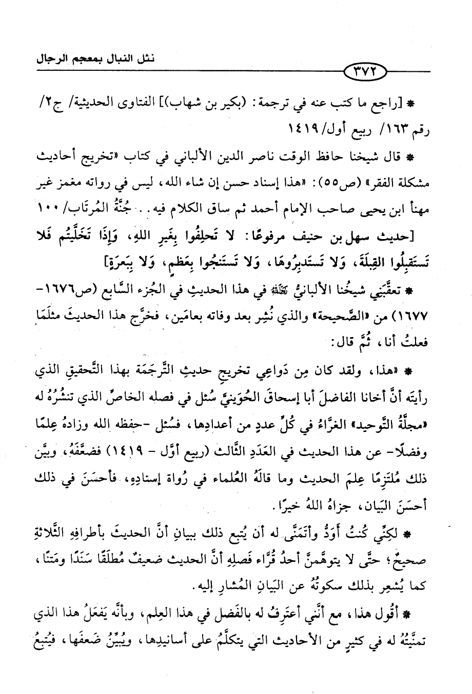 * [راجع ما كتب عنه في ترجمة: (بكير بن شهاب)]، الفتاوى الحديثية / ج 2/ رقم 163/ ربيع أول / 1419