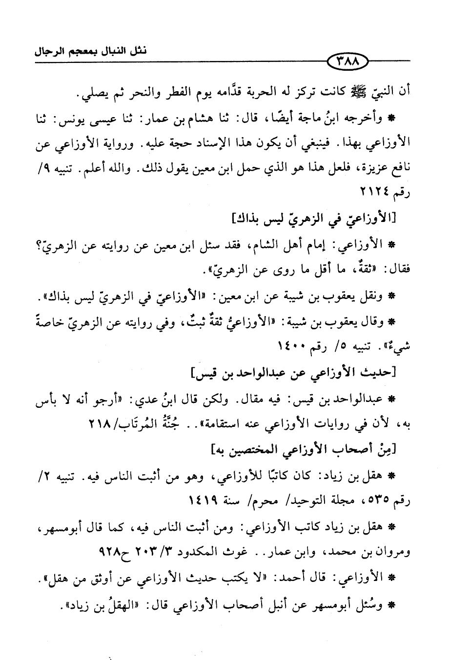 * الأوزاعي: قال أحمد: "لا يكتب حديث الأوزاعي عن أوثق من هقل".