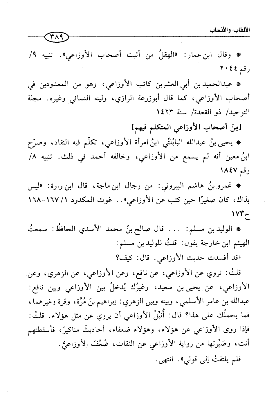 [مِنْ أصحاب الأوزاعي المتكلم فيهم]