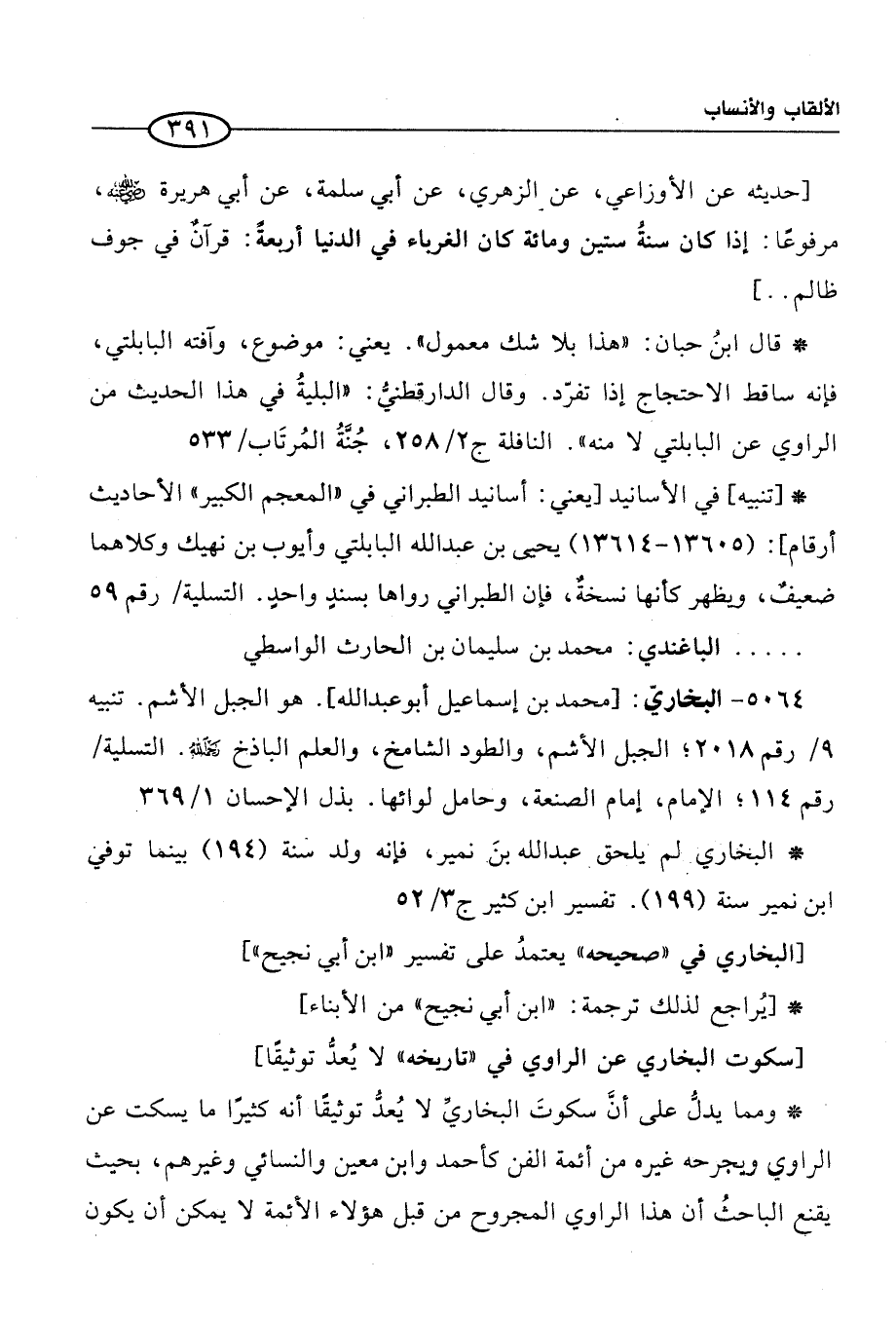 5064 - البخاريّ: [محمَّد بن إسماعيل أبو عبد الله]. هو الجبل الأشم. تنبيه 9/ رقم 2018؛ الجبل الأشم، والطود الشامخ، والعلم الباذخ رحمه الله. التسلية/ رقم 114؛ الإِمام، إمام الصنعة، وحامل لوائها. بذل الإحسان 1/ 369