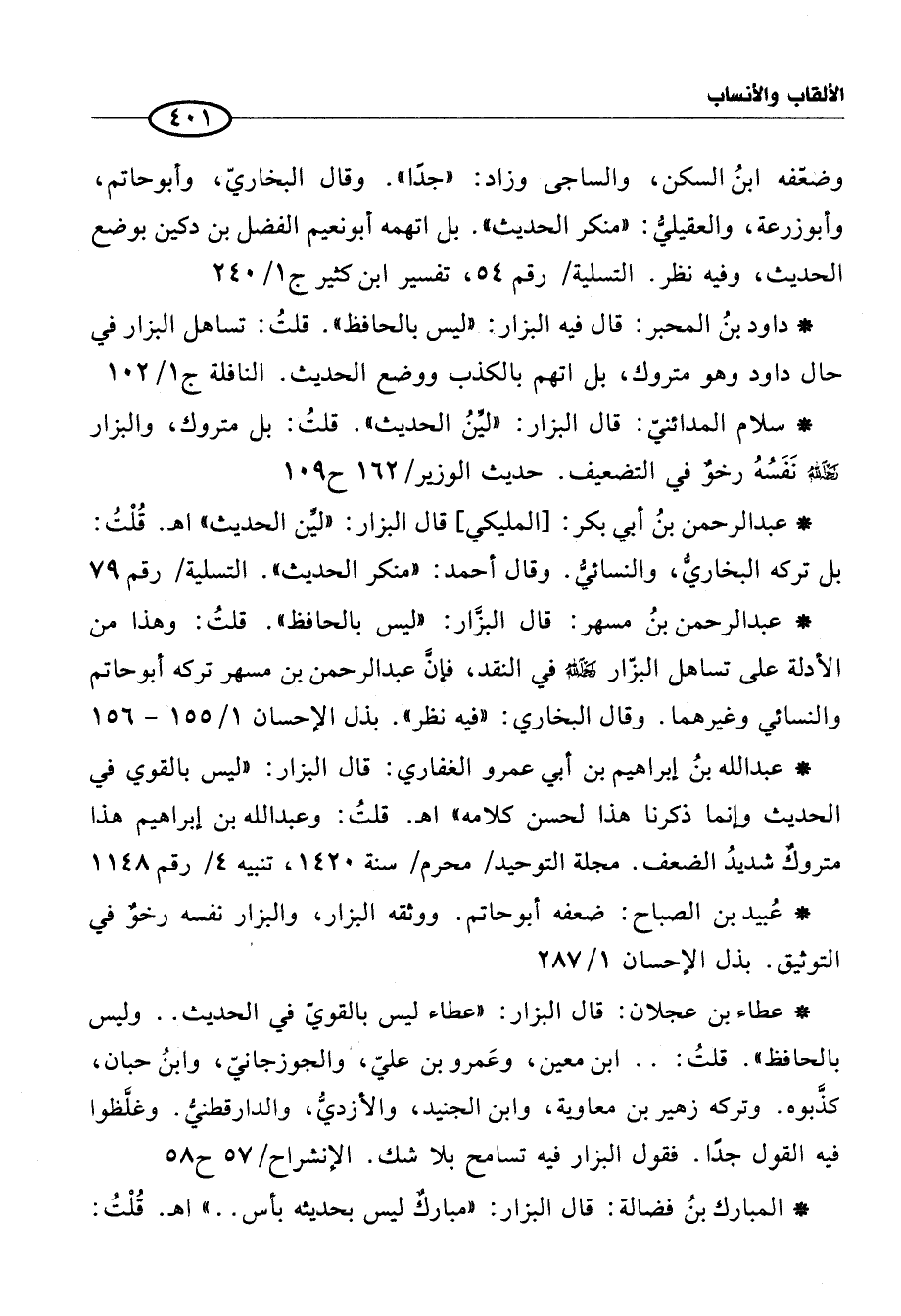 * عطاء بن عجلان: قال البزار: "عطاء ليس بالقويّ في الحديث. . وليس بالحافظ". قلتُ:. . ابن معين، وعَمرو بن عليّ، والجوزجانيّ، وابنُ حبان، كذَّبوه. وتركه زهير بن معاوية، وابن الجنيد، والأزديُّ، والدارقطنيّ. وغلَّظوا فيه القول جدًا. فقول البزار فيه تسامح بلا شك. الإنشراح/ 57 ح 58
