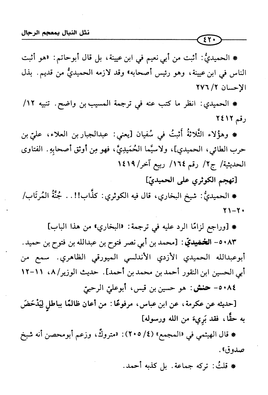 * الحميديُّ: شيخ البخاري، قال في الكوثري: كذَّاب!!. . جُنَّةُ المُرتَاب/20 - 21