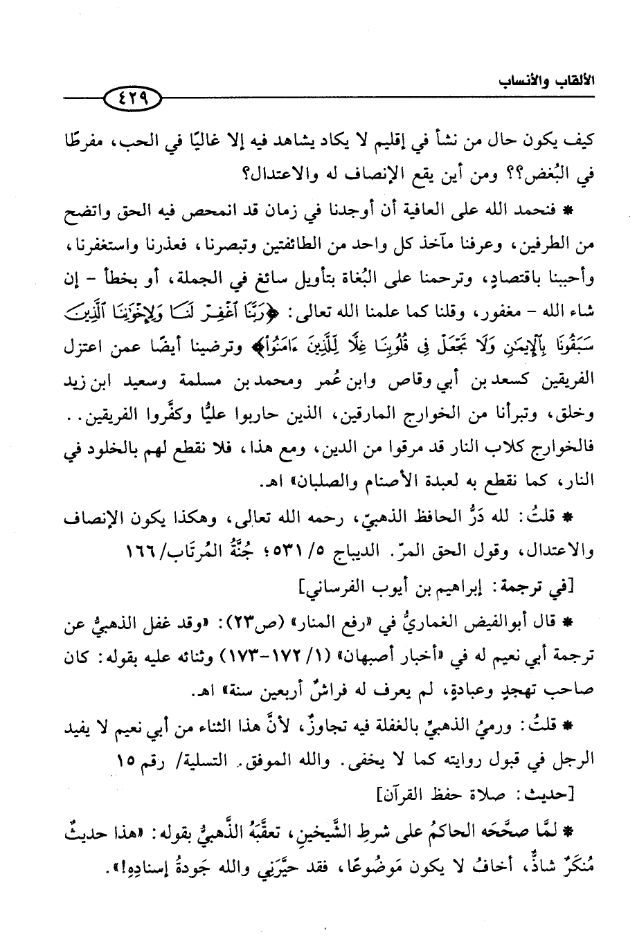 * قلتُ: لله دَرُّ الحافظ الذهبيّ، رحمه الله تعالى، وهكذا يكون الإنصاف والاعتدال، وقول الحق المرّ. الديباج 5/ 531؛ جُنَّةُ المُرتَاب / 166