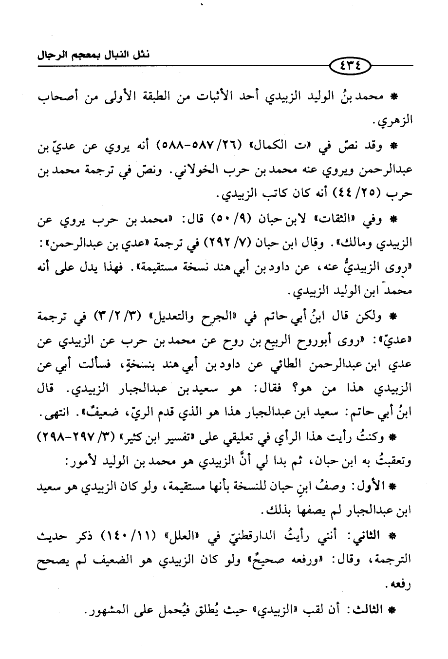 * الأول: وصفُ ابنِ حبان للنسخة بأنها مستقيمة، ولو كان الزبيدي هو سعيد ابن عبد الجبار لم يصفها بذلك.