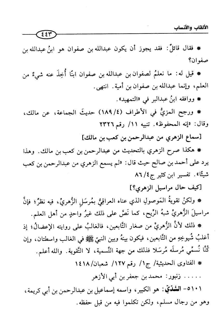 * ولكنْ تقويةُ المَوصولِ الذي عناه العراقِيُّ بمُرسَلِ الزُّهريِّ، فيه نظرٌ؛ فإنَّ مراسيلَ الزُّهريّ شبهُ الرِّيح، كما نَصَّ على ذلك غيرُ واحدٍ من أهل العلم.