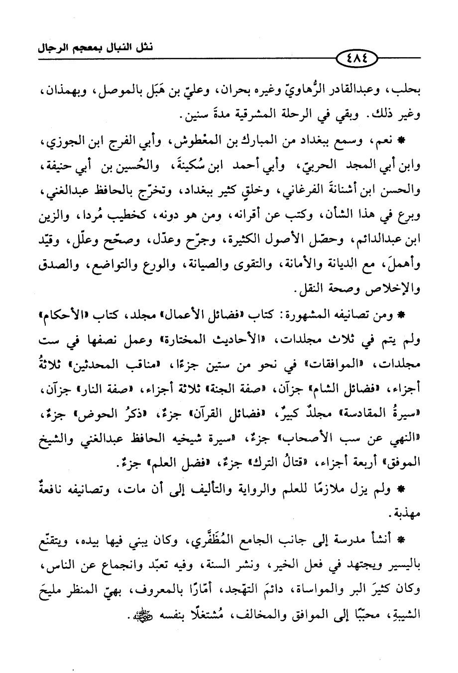 * ولم يزل ملازمًا للعلم والرواية والتأليف إلى أن مات، وتصانيفه نافعةٌ مهذبة.