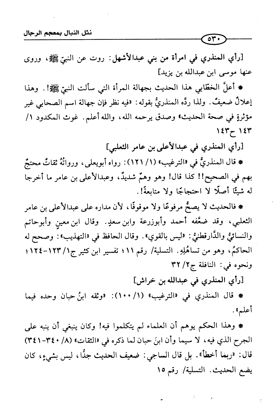 [رأي المنذري في عبد الأعلي بن عامر الثعلبي]