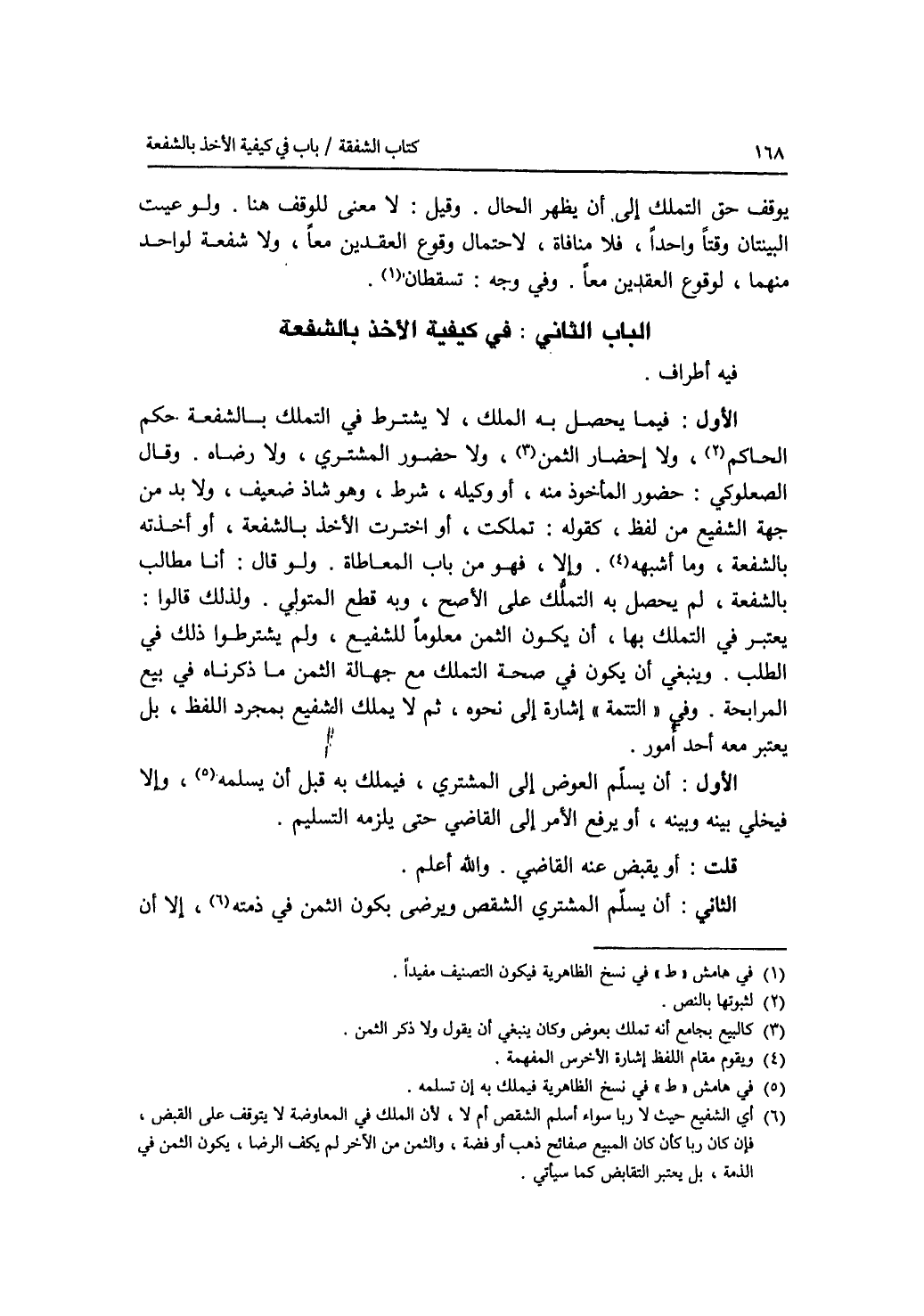 الباب الثاني : في كيفية الاخذ بالشفعة فيه أطراف.