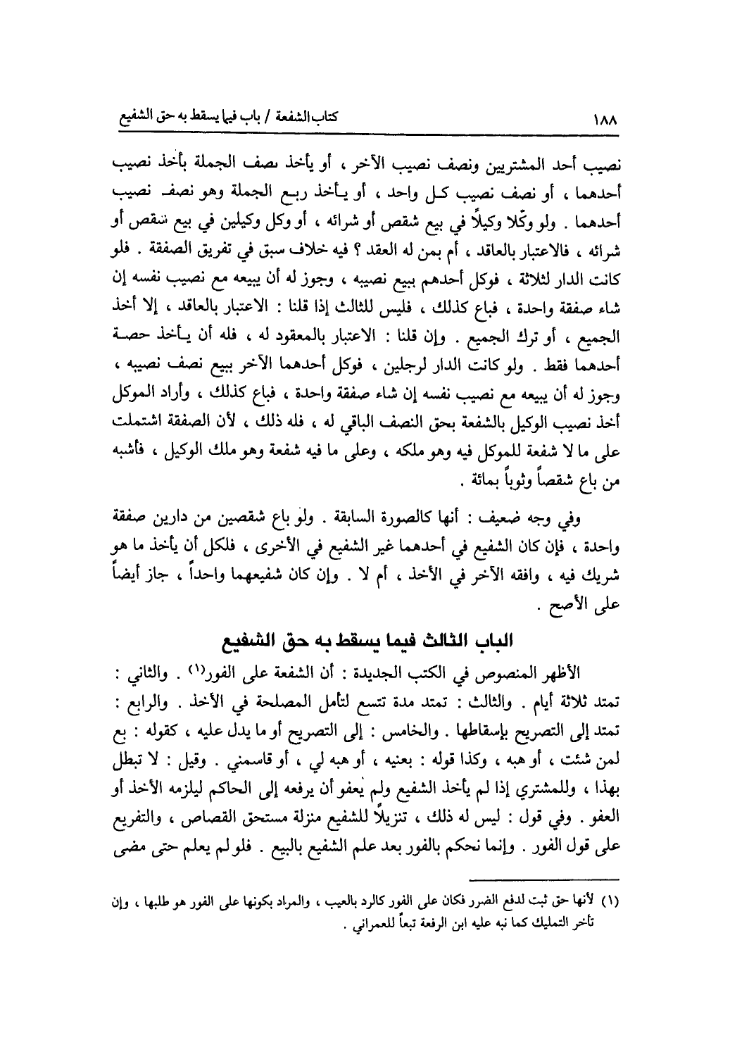 الباب الثالث : فيما يسقط به حق الشفيع.