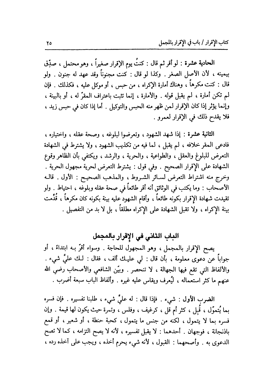 الباب الثاني : في الاقرار بالمجمل