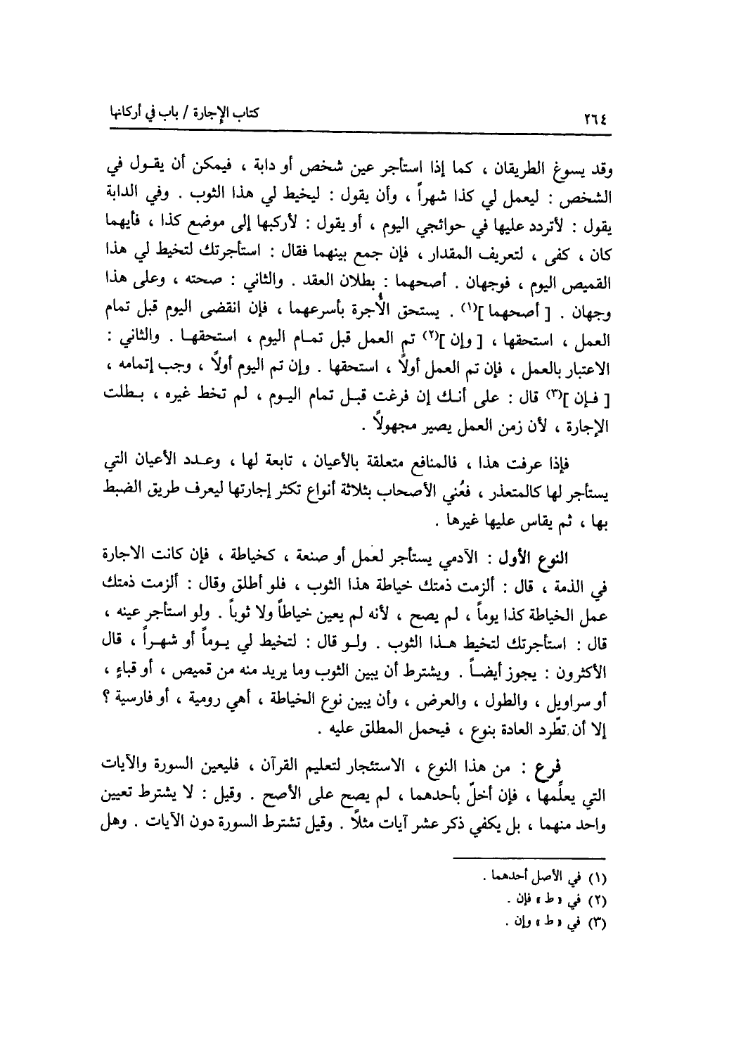 وقد يسوغ الطريقان، كما إذا استأجر عين شخص أو دابة، فيمكن أن يقول في الشخص: ليعمل لي كذا شهرا، وإن يقول: ليخيط لي هذا الثوب. وفي الدابة يقول: لاتردد عليها في حوائجي اليوم، أو يقول: لاركبها إلى موضع كذا، فأيهما كان، كفى، لتعريف المقدار. فإن جمع بينهما فقال: استأجرتك لتخيط لي هذا القميص اليوم، فوجهان. أصحهما: بطلان العقد. والثاني: صحته، وعلى هذا وجهان. أصحهما: يستحق الاجرة بأسرعهما، فإن انقضى اليوم قبل تمام العمل، استحقها، فإن تم العمل قبل تمام اليوم، استحقها. والثاني: الاعتبار بالعمل، فإن تم العمل أولا، استحقها. وإن تم اليوم أولا، وجب إتمامه. وإن قال: على أنك إن فرغت قجل تمام اليوم، لم تخط غيره، بطلت الاجارة، لان زمن العمل يصير مجهولا. فإذا عرفت هذا، فالمنافع متعلقة بالاعيان، تابعة لها، وعدد الاعيان التي يستأجر لها كالمتعذر، فعني الاصحاب بثلاثة أنواع تكثر إجارتها ليعرف طريق الضبط بها، ثم يقاس عليها غيرها. النوع الاول: الآدمي يستأجر لعمل أو صنعة، كخياطة، فإن كانت الاجارة في الذمة، قال: ألزمت ذمتك عمل الخياطة كذا يوما، لم يصح، لانه لم يعين خياطا ولا ثوبا. ولو استأجر عينه، قال: استأجرتك لتخيط هذا الثوب. ولو قال: لتخيط لي يوما أو شهرا، قال الاكثرون: يجوز أيضا. ويشترط أن يبين الثوب وما يريد منه من قميص، أو قباء، أو سراويل، والطول، والعرض، وأن يبين نوع الخياطة، أهي رومية، أو فارسية ؟ إلا أن تطرد العادة بنوع، فيحمل المطلق عليه. فرع من هذا النوع، الاستئجار لتعليم القرآن، فليعين السورة والآيات التي يعلمها، فإن أخل بأحدهما، لم يصح على الاصح. وقيل: لا يشترط تعيين واحد منهما، بل يكفي ذكر عشر آيات مثلا. وقيل: تشترط السورة دون الآيات. وهل