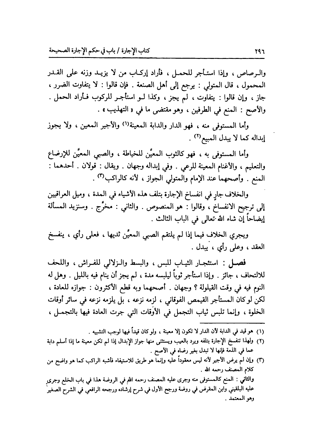 والرصاص. وإذا استأجر للحمل، فأراد إركاب من لا يزيد وزنه على القدر المحمول، قال المتولي: يرجع إلى أهل الصنعة. فإن قالوا: لا يتفاوت الضرر، جاز، وإن قالوا: يتفاوت، لم يجز. وكذا لو استأجر للركوب فأراد الحمل. والاصح: المنع في الطرفين، وهو مقتضى ما في التهذيب. وأما المستوفى منه، فهو الدار والدابة المعينة، والاجير المعين، ولا يجوز إبداله كما لا يبدل المبيع. وأما المستوفى به، فهو كالثوب المعين للخياطة والصبي المعين للارضاع والتعليم، والاغنام المعينة للرعي. وفي إبداله وجهان. ويقال: قولان. أحدهما: المنع. وأصحهما عند الامام والمتولي الجواز، لانه كالراكب. والخلاف جار في انفساخ الاجارة بتلف هذه الاشياء في المدة، وميل العراقيين إلى ترجيح الانفساخ، وقالوا: هو المنصوص. والثاني: مخرج. وسنزيد المسألة إيضاحا إن شاء الله تعالى في الباب الثالث. ويجري الخلاف فيما إذا لم يلتقم الصبي المعين ثديها، فعلى رأي، ينفسخ العقد، وعلى رأي، يبدل. فصل استئجار الثياب للبس، والبسط والزلالي للفراش، واللحف للالتحاف، جائز. وإذا استأجر ثوبا ليلبسه مدة، لم يجز أن ينام فيه بالليل. وهل له النوم فيه (في) وقت القيلولة ؟ وجهان. أصحهما وبه قطع الاكثرون: جوازه للعادة. لكن لو كان المستأجر القميص الفوقاني، لزمه نزعه بل يلزمه نزعه في سائر أوقات الخلوة، وإنما تلبس ثياب التجمل في الاوقات التي جذت العادة فيها بالتجمل،